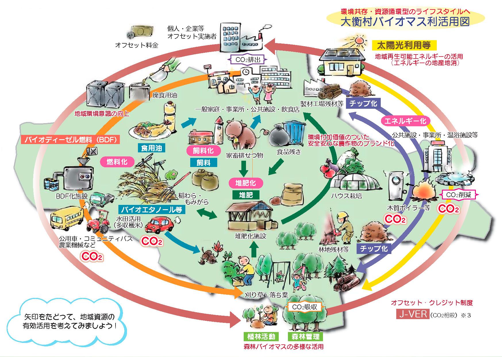 第5次大衡村総合計画の基本理念「共に育み共に創り 共に生きる 愛と活力にあふれたまちづくり」に基づき,自然環境に配慮した新しい地域エネルギー導入を推進する「大衡村地域新エネルギービジョン」(平成21年策定)のさらなる具現化のため,地域の身近なバイオマスの利活用を通して、人・風土・産業がつながる環境にやさしい地域資源循環のまちづくりを目指します。